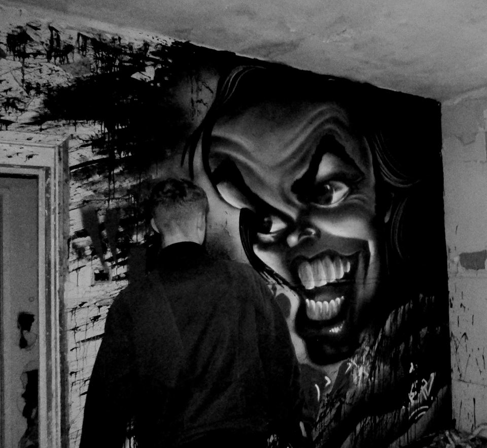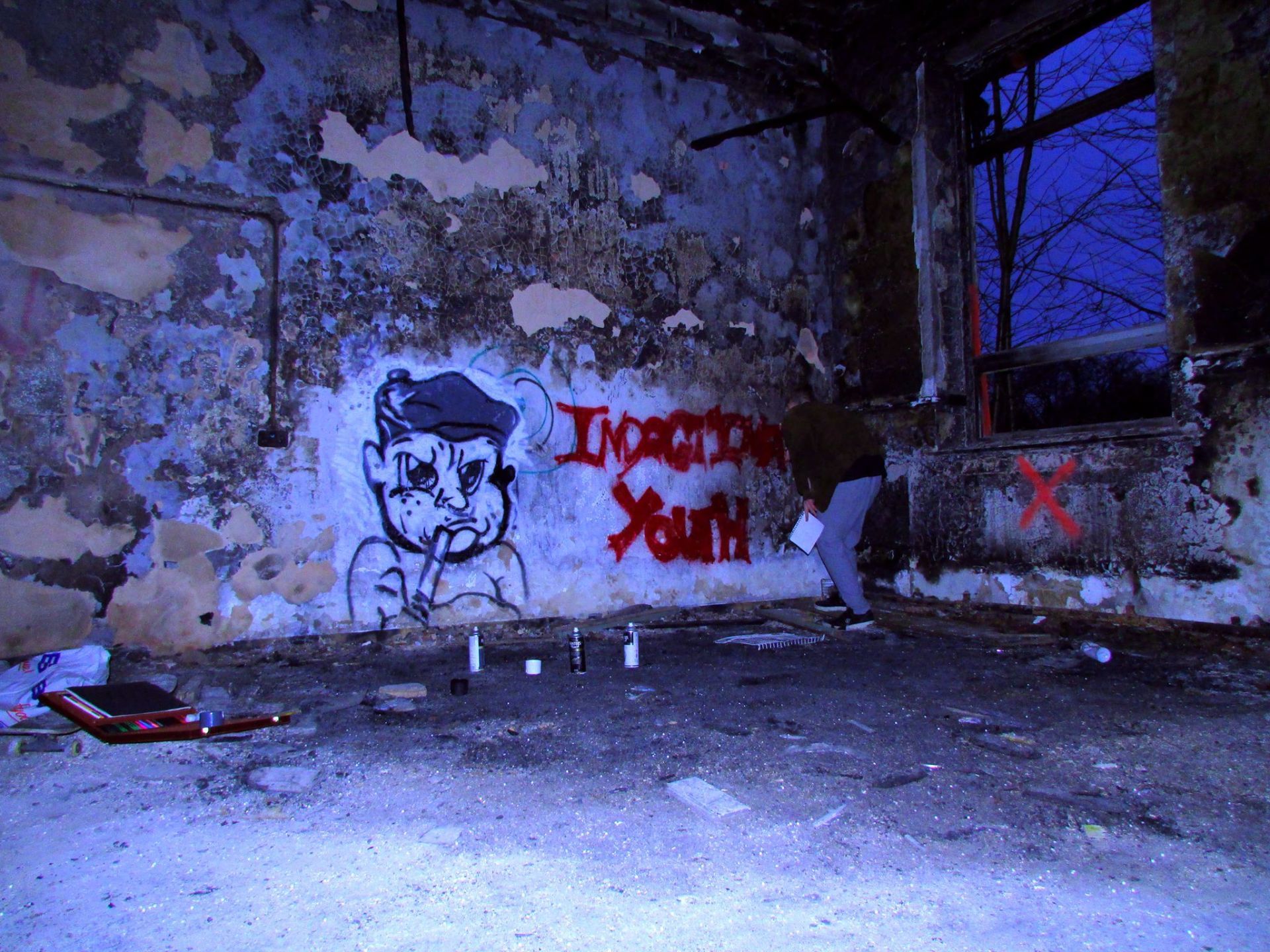 I decided to do this piece at an abandoned RAF base in Driffield as it felt like an interesting environment for my art to be displayed and I spent most of my day looking around the old RAF base - at previous art and taking inspiration from it. I was unsure whereabouts I could do this piece throughout the RAF base and where the environment would enhance the creativity of my piece. I eventually came across a derelict room with a small segment of the wall intact and still had white paint on it while the rest of the walls layer of paint had peeled away over time. I liked this as it further displayed the idea of corroded political views and with art coming from it showing there is still chance for good to emerge.